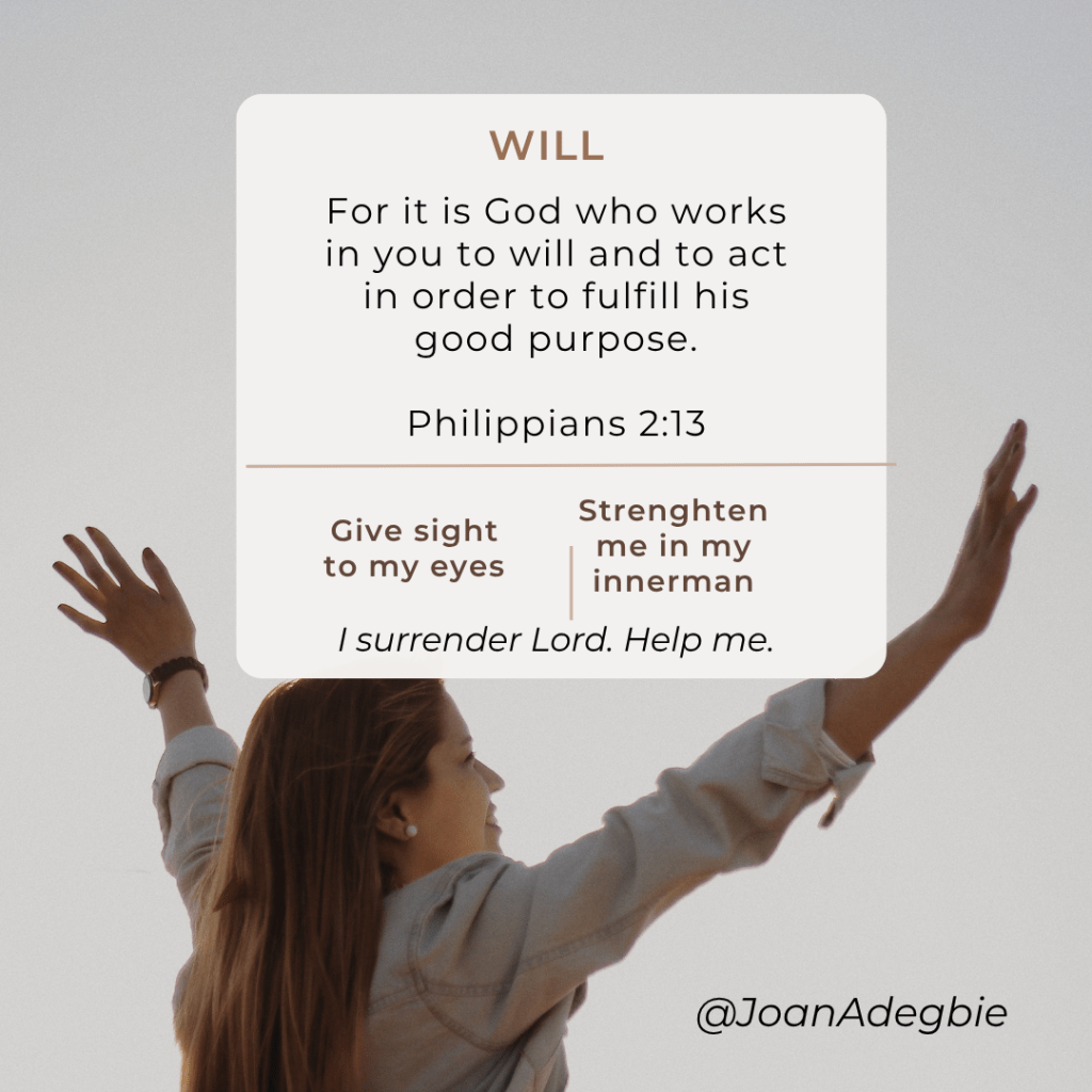 How do I WILL myself to stay on track, and do the needful? Father Lord, except you help me I don’t know how to help myself. Lord, increase my faith, remind me of your faithfulness, work in me to will and to act so your good pleasure can be fulfilled in me – Philippians 2:13.